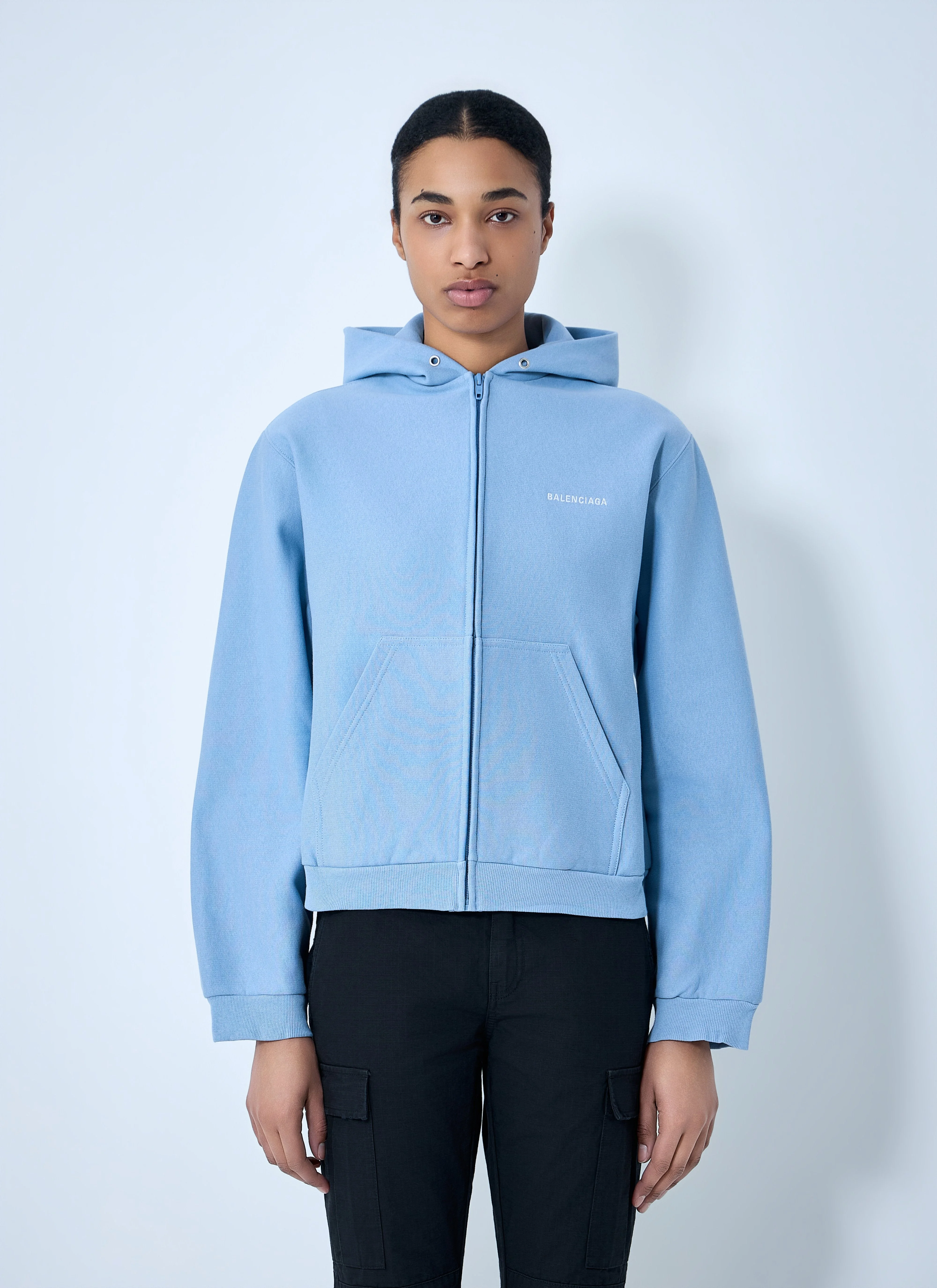 Women's Balenciaga Back Zip-up Hoodie Regular Fit in Light Blue/white