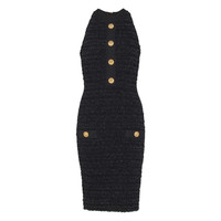buttoned-pocket tweed mini dress