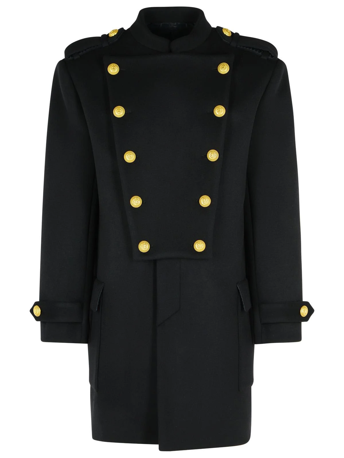 Official style collar, structured shoulders, shoulder straps with buttons and loops, long sleeves with strap and button, 4-button closure engraved under the flap, removable plastron with 10 buttons, two side flap pockets, martingale with buttons on the back, gold metal 'Leone catena' buttons, 'PB' labyrinth monogram lining, straight midi fit Size Type: IT Material: 90% virgin wool, 10% cashmere SKU: FH1UC155WB500PA Our Products Are 100% Genuine. In All Cases We Stand By The Authenticity Of Every Product Sold On Our Site. All sales are final and we only accept returns for quality issue. Buyer is responsible for any import tax/duty if applicable.