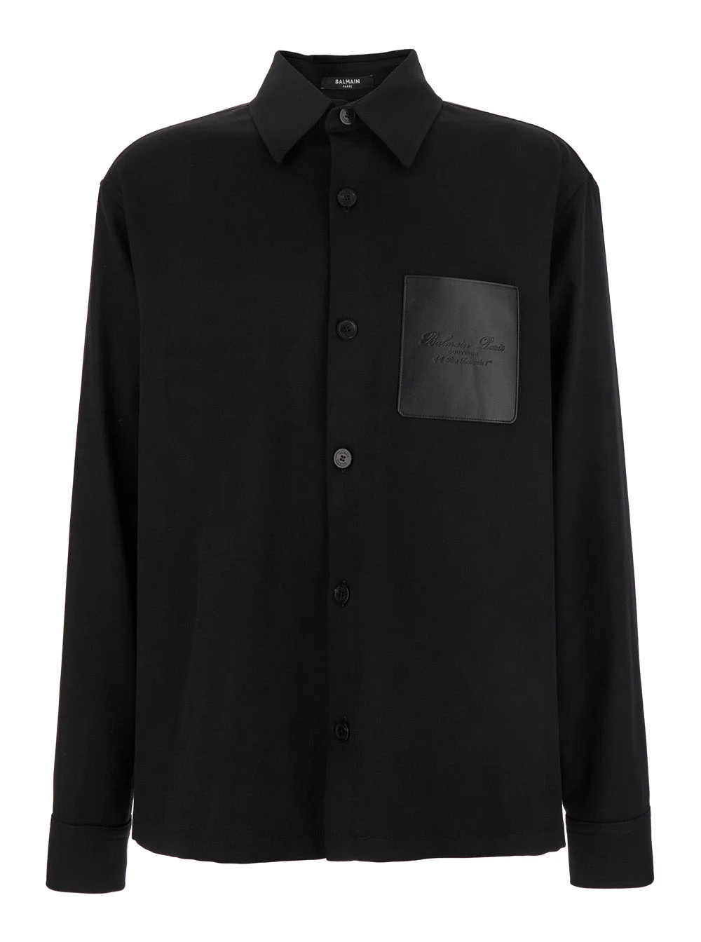 Balmain Men Black Shirt With Classic Collar And Logo Detail On The Pocket In Wool Stretch Man