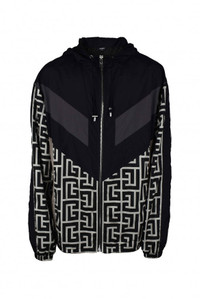 <p>Balmain black and beige nylon windbreaker jacket. Black drawstring hood. White and black monogrammed logo on bottom and sleeves. Beige and brown details. Zip closure. Side zip pockets. Elasticated waist and sleeves. Long sleeves.</p> Size Type: INT SKU: XH1TI036XB33 Our Products Are 100% Genuine. In All Cases We Stand By The Authenticity Of Every Product Sold On Our Site. All sales are final and we only accept returns for quality issue. Buyer is responsible for any import tax/duty if applicable.