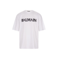 BALMAIN MEN Loose Fit Crystal Logo SS Oversized T-Shirt White/Black