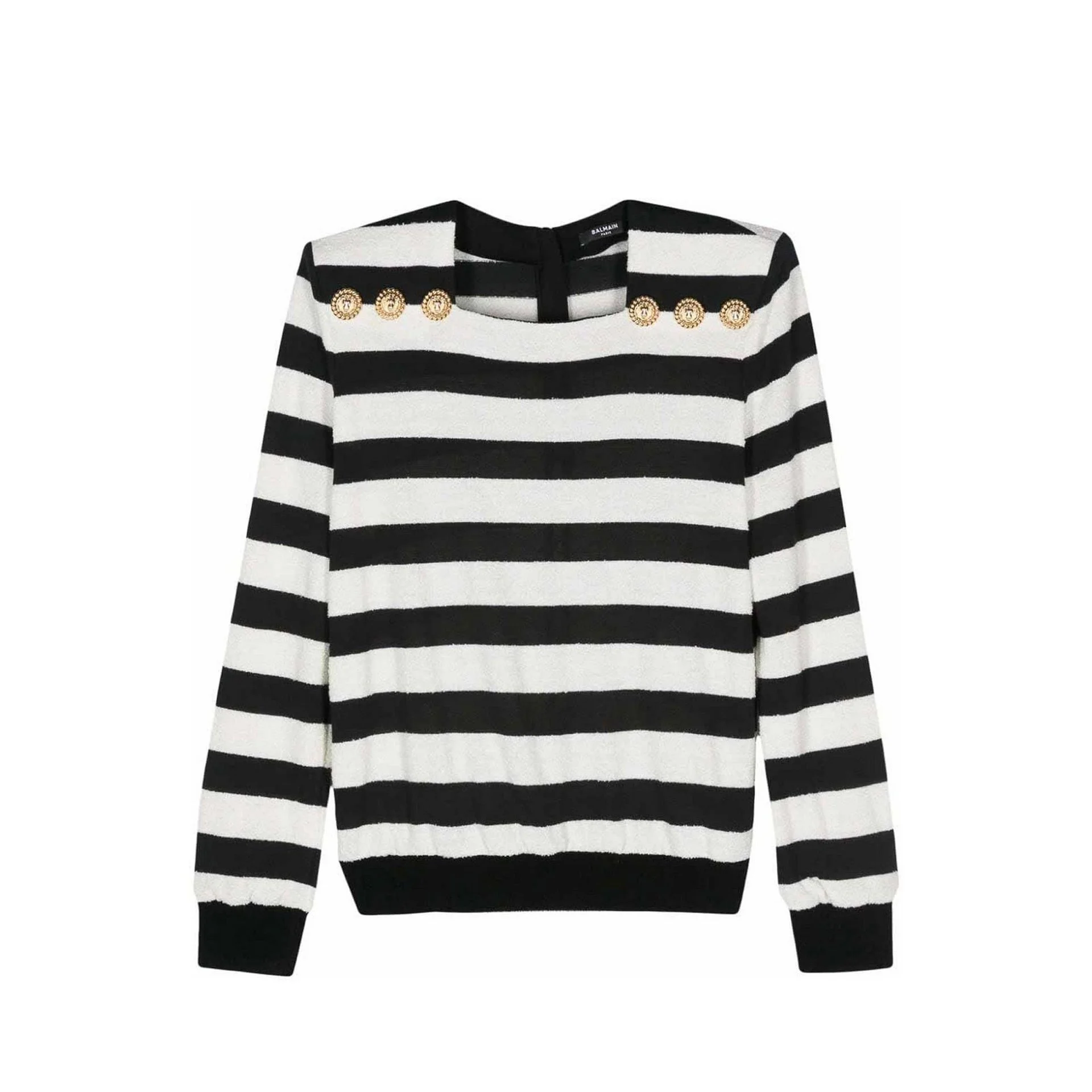 - Composition: 49% Acrylic 30% Cotton 21% Polyamide - Long sleeves - Hand wash - Square neck - Straight hem - Shoulder pads - Knitted construction - Back invisible zip closure - Embossed gold-tone buttons - Horizontal stripe pattern - Made in France - Gender: WOMEN - MPN DF1AR845JI70_EAB - Barcode: 3615884770719 - Code: KNT BN 2 CW FW24 12716 Size Type: IT SKU: DF1AR845JI70EABBarcode:3615884770719 Our Products Are 100% Genuine. In All Cases We Stand By The Authenticity Of Every Product Sold On Our Site. All sales are final and we only accept returns for quality issue. Buyer is responsible for any import tax/duty if applicable.