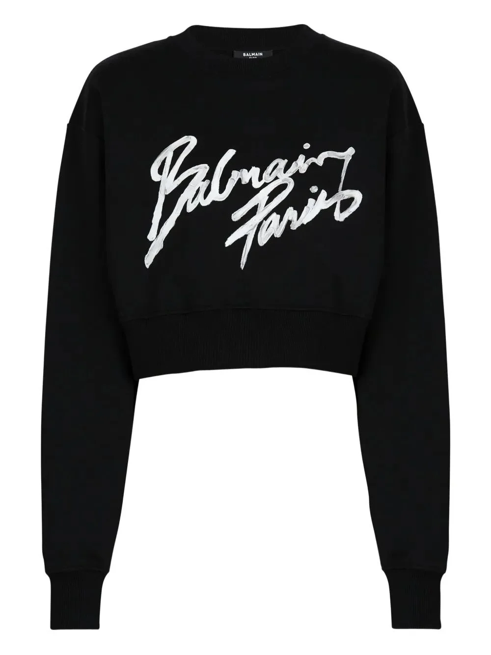 Balmain Women "Balmain Paris" Cropped Roundneck Sweater