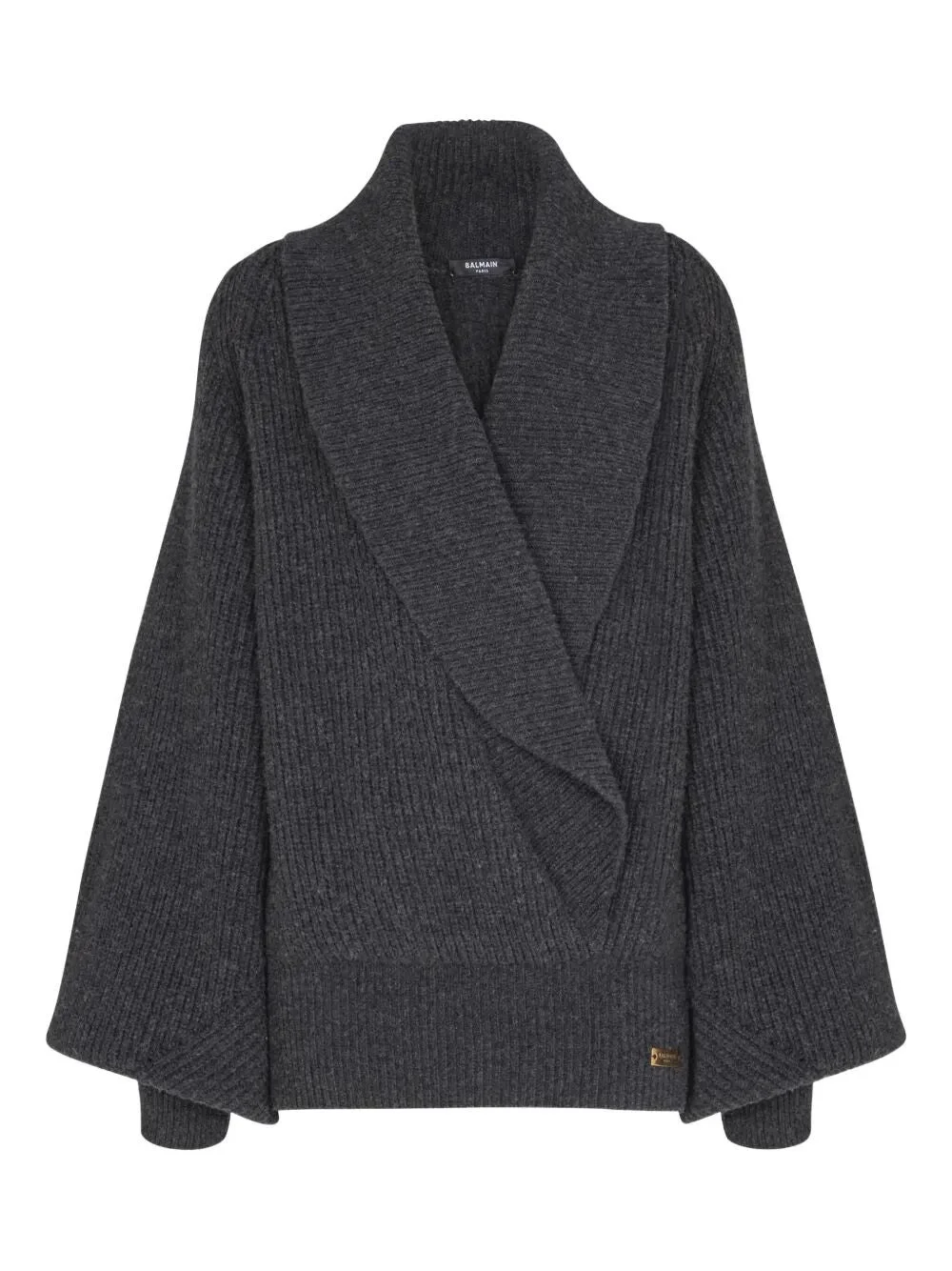 Balmain Women Batwing Open Neck Ribbed Knit Pull