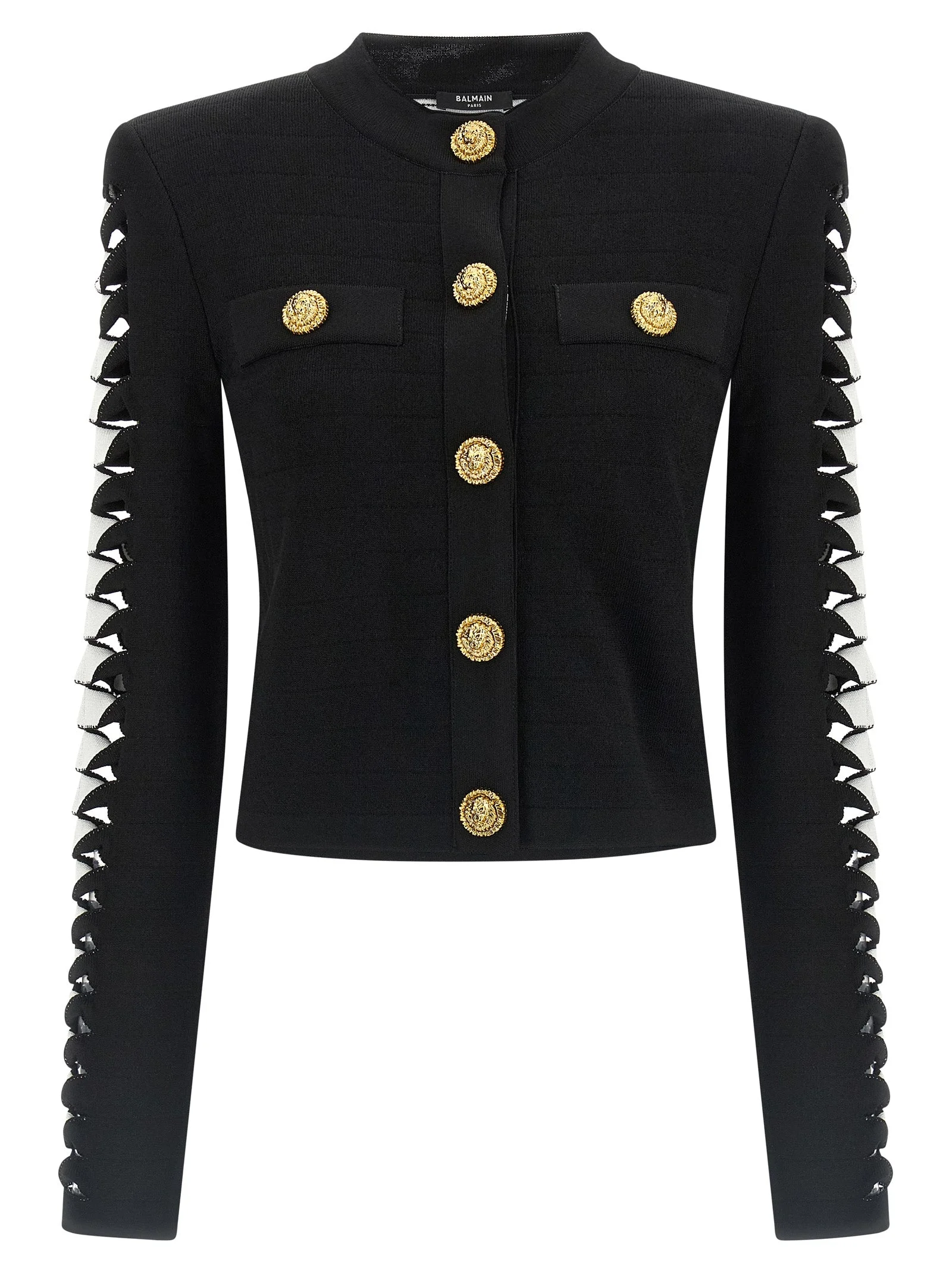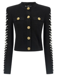 Blazer in stretch viscose blend with cut-out details and fabric turn-ups on the sleeves, padded shoulders, single-breasted bolero style with front metal 'Testa di leone' button closure, trompe l'oeil pockets, long sleeves, unlined. true to size fit - FRENCH size 86% viscose 11% polyester 2% polyamide 1% elastane SKU: FF0KL260KI98EAB Our Products Are 100% Genuine. In All Cases We Stand By The Authenticity Of Every Product Sold On Our Site. All sales are final and we only accept returns for quality issue. Buyer is responsible for any import tax/duty if applicable.