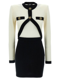 Wool and cashmere blend dress with trompe l'oeil details and 'Filo Leone Catena' buttons, layered cardigan, crew neck, padded shoulders, long sleeves. Slim fit French size 60% wo, 25% ws, 15% wo SKU: EF1R9259KH91GAU Our Products Are 100% Genuine. In All Cases We Stand By The Authenticity Of Every Product Sold On Our Site. All sales are final and we only accept returns for quality issue. Buyer is responsible for any import tax/duty if applicable.