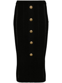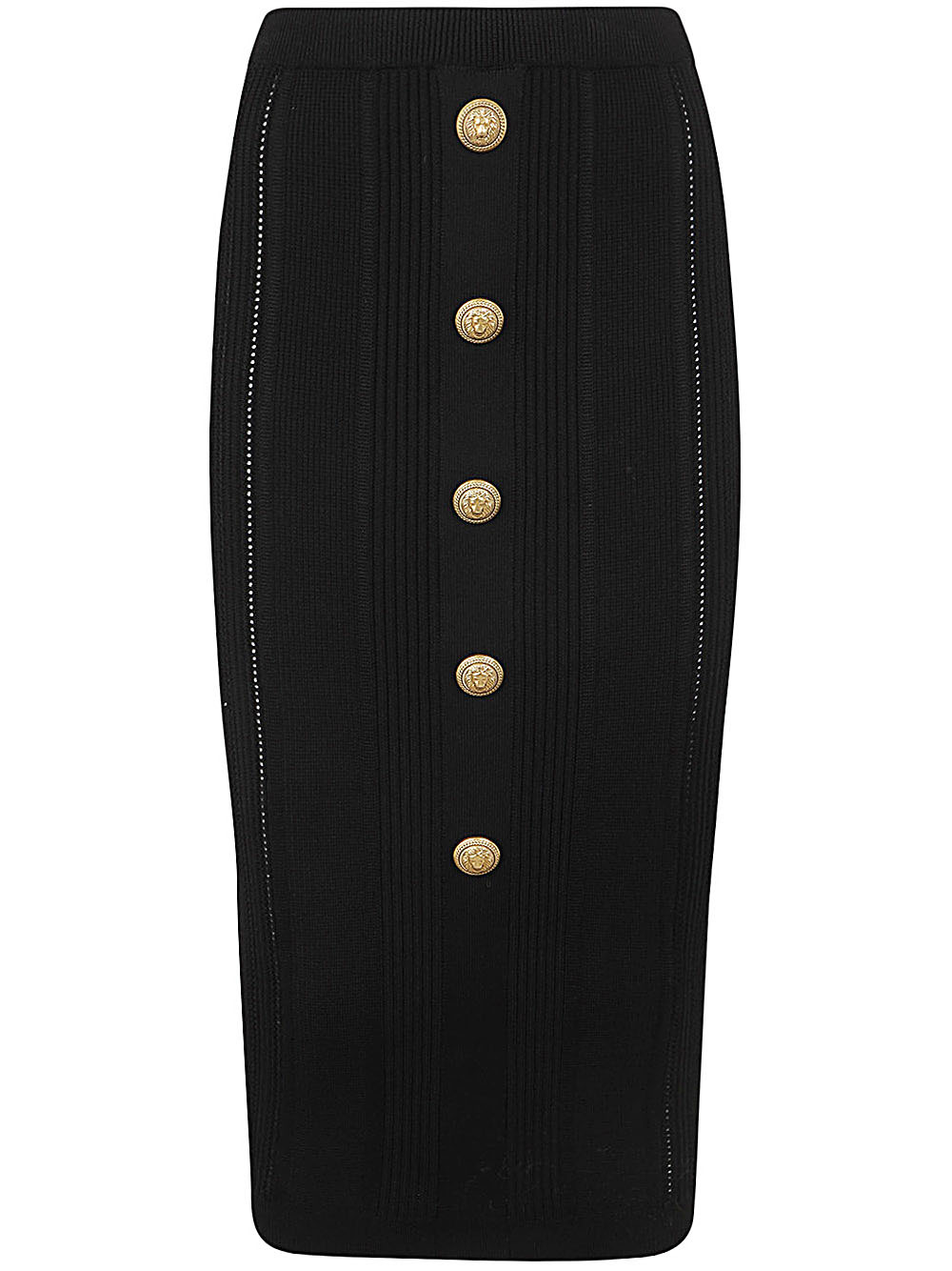 Balmain Women High Waist Five Button See Through Knit Midi Skirt