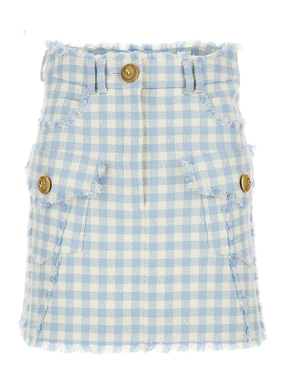 Balmain Women Light-Blue Vichy Tweed Mini Skirt In Cotton Blend Woman