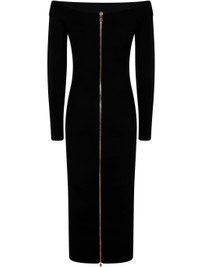 Balmain Women Ls Double Collar Knit Zipped Midi Dress