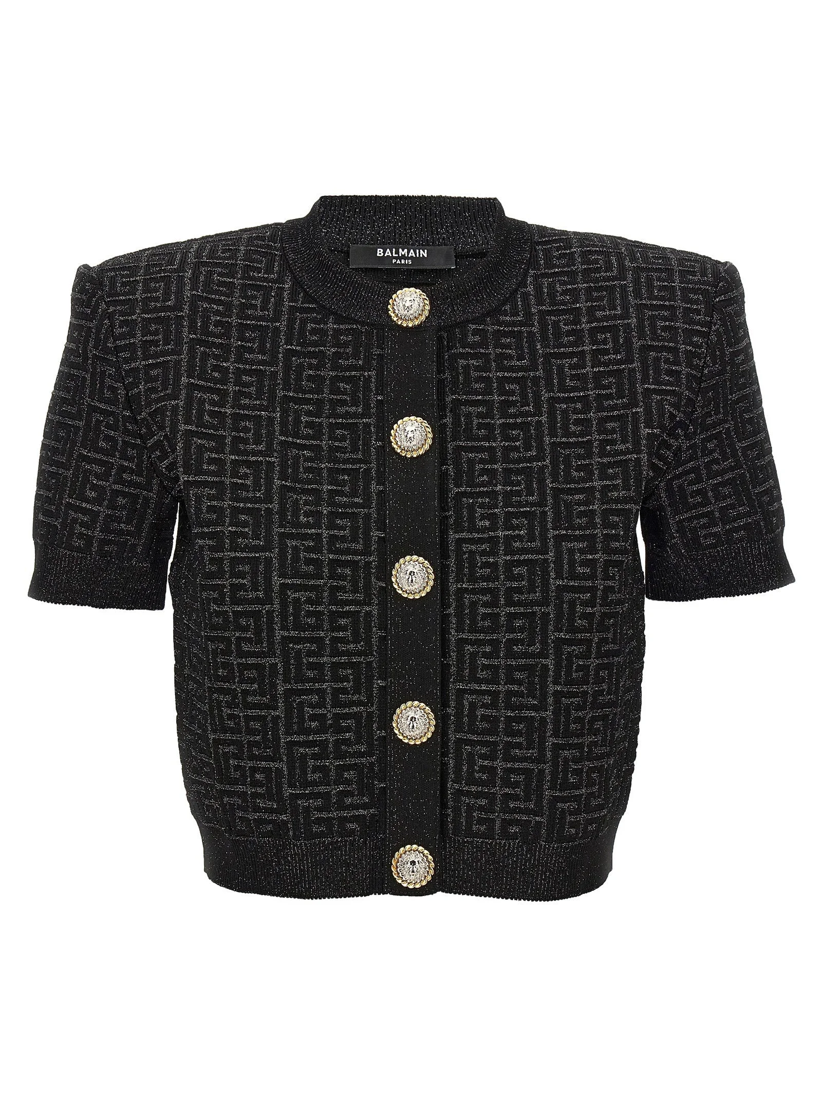 Cropped cardigan in lurex viscose blend, all-over 'Monogram' pattern, logo button closure, padded shoulders, short sleeves. True to size fit French size 70% viscose 16% rayon 14% polyester SKU: DF1SB215KG96EAC Our Products Are 100% Genuine. In All Cases We Stand By The Authenticity Of Every Product Sold On Our Site. All sales are final and we only accept returns for quality issue. Buyer is responsible for any import tax/duty if applicable.