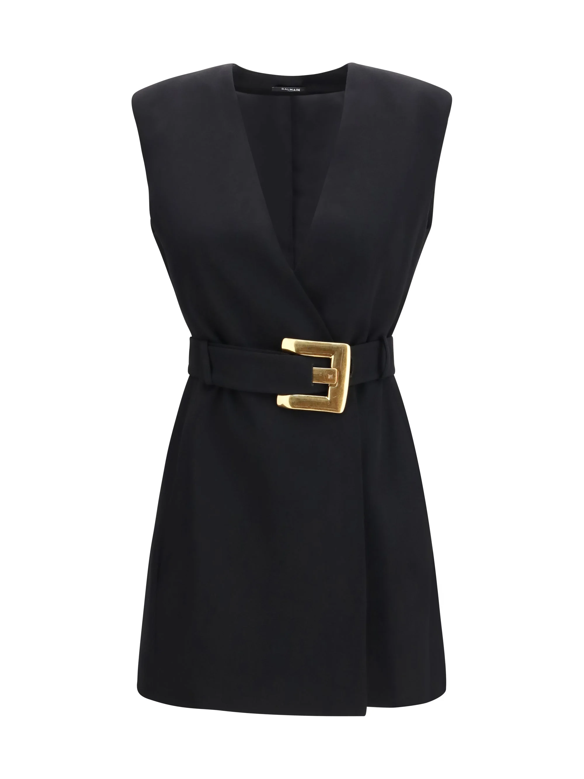 The short wrap Dress by Balmain is a sophisticated piece made from grain de poudre fabric that exudes elegance and modernity. The V-neckline and sleeveless design give it a feminine and sensual look, while the double-breasted closure with belt and Anthem buckle at the waist define the silhouette with a distinctive touch. The fitted cut enhances the figure, making this dress perfect for special occasions or elegant evenings. Size Type: FR SKU: GF1R5168WC090PA Our Products Are 100% Genuine. In All Cases We Stand By The Authenticity Of Every Product Sold On Our Site. All sales are final and we only accept returns for quality issue. Buyer is responsible for any import tax/duty if applicable.