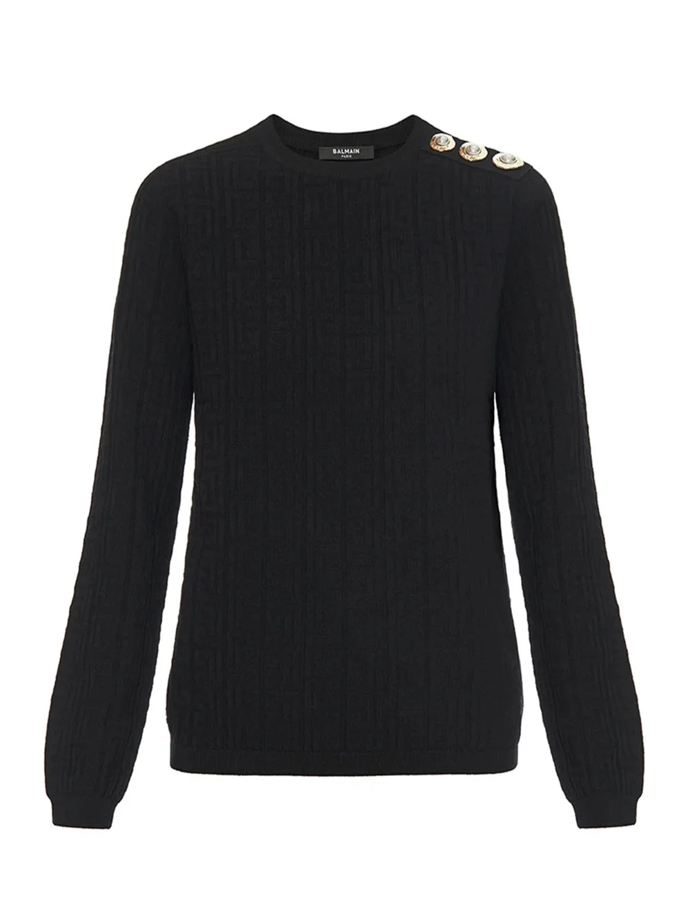 Sweater with button detail Origin: Italy Features Black Jacquard pattern Button decoration on the shoulder Crew neck Long sleeves Composition 67% viscose, 33% polyester Washing Instructions Read the manufacturer`s instructions ID FF1KD090KI63 Viscose | 67%VISCOSE 33%POLYESTER Size Type: FR SKU: FF1KD090KI63Black Our Products Are 100% Genuine. In All Cases We Stand By The Authenticity Of Every Product Sold On Our Site. All sales are final and we only accept returns for quality issue. Buyer is responsible for any import tax/duty if applicable.