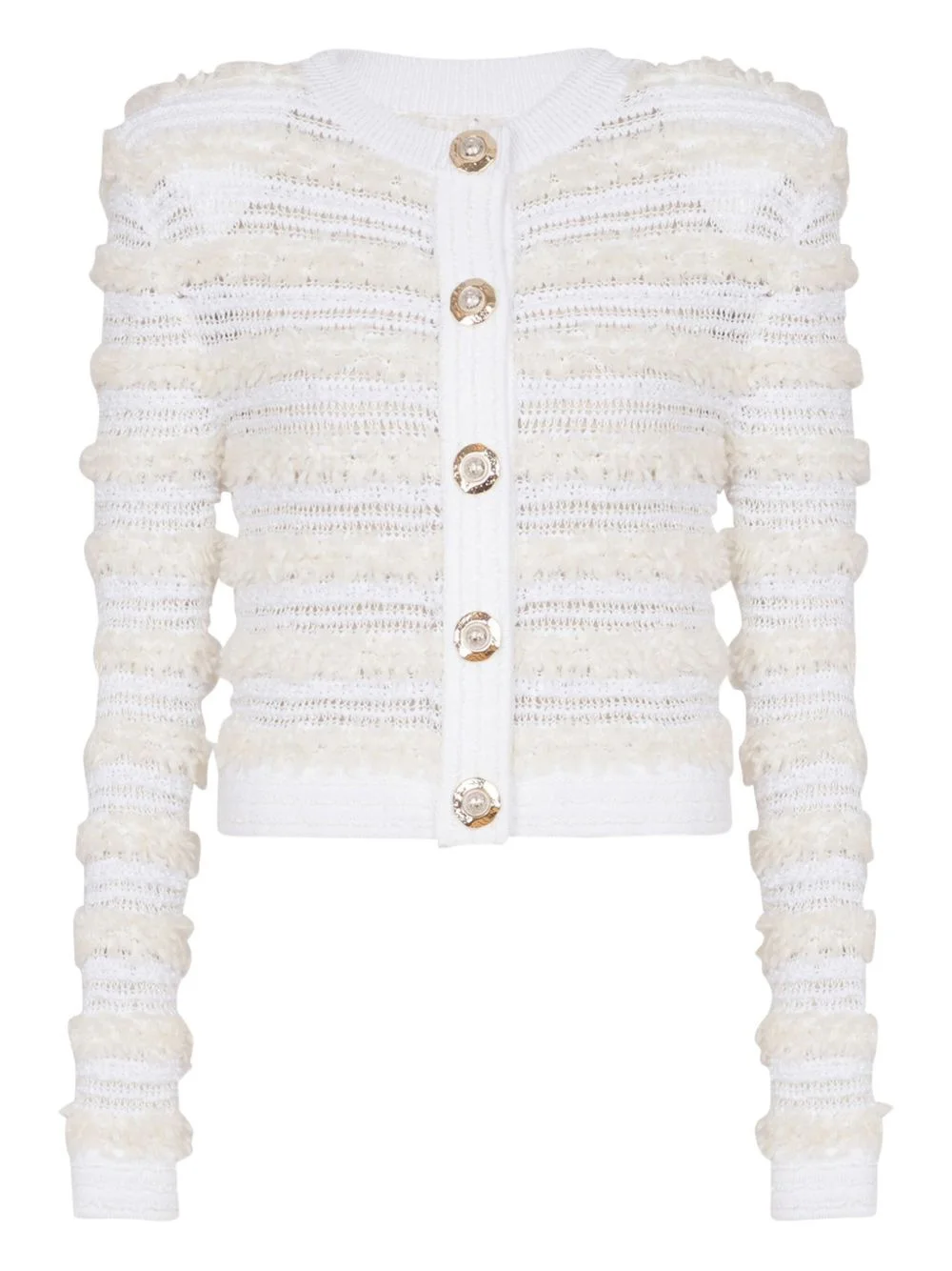 Long-sleeved tweed-effect knit cardigan