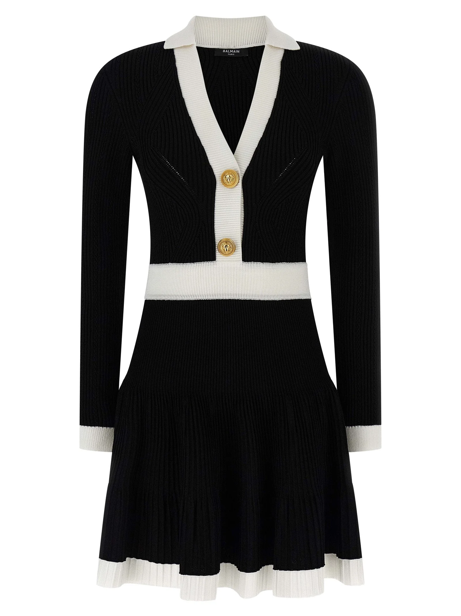 Two-tone stretch knit crochet mini dress, V-neck, collar, front snap button closure with decorative metal button applique, long sleeves, full skirt with pleated effect. slim fit - FRENCH size 84% viscose, 16% polyester SKU: FF1R9858KI64EAB Our Products Are 100% Genuine. In All Cases We Stand By The Authenticity Of Every Product Sold On Our Site. All sales are final and we only accept returns for quality issue. Buyer is responsible for any import tax/duty if applicable.