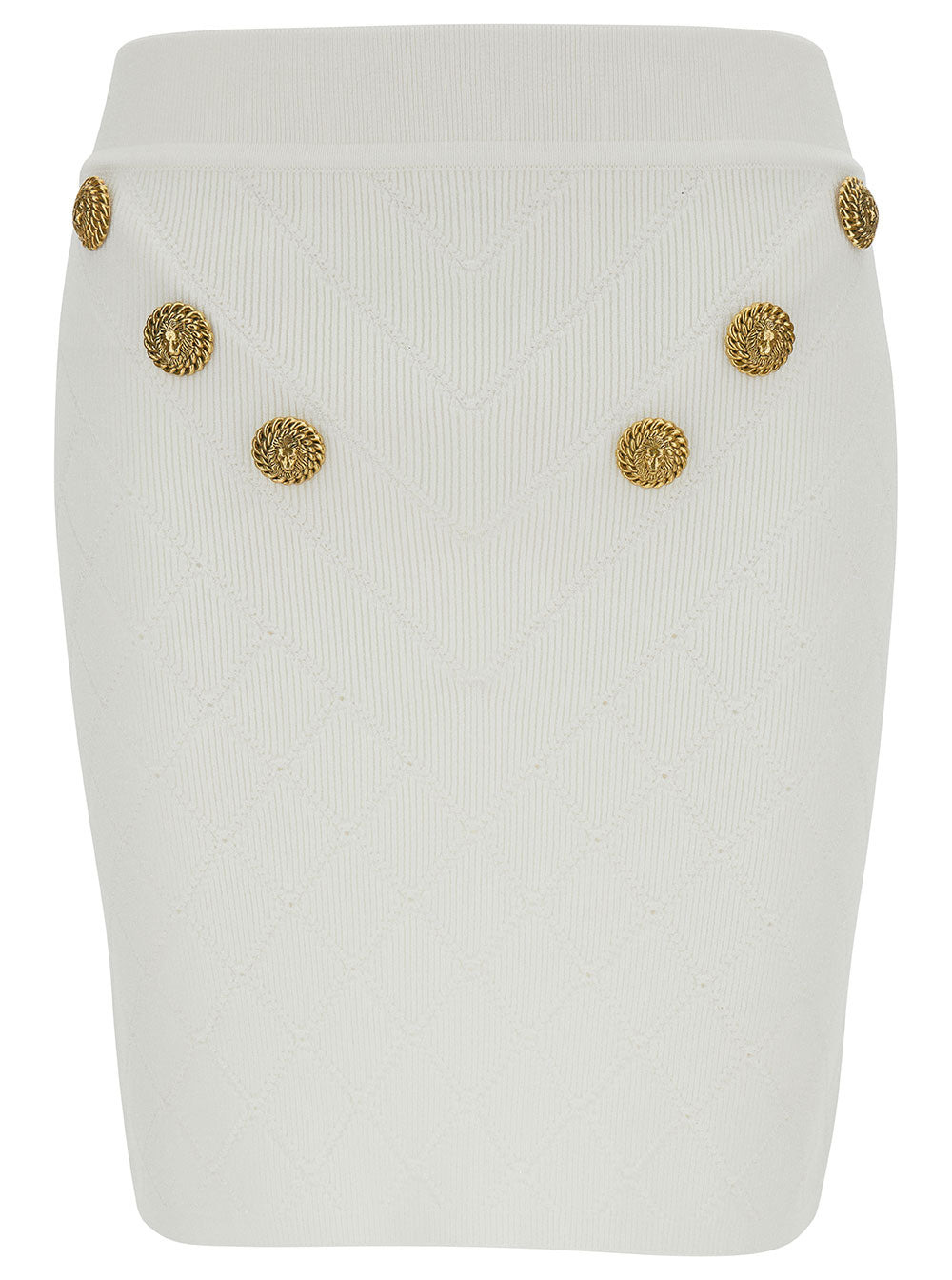 Balmain Women White Mini Pencil Skirt With Jewel Buttons In Viscose Blend Woman