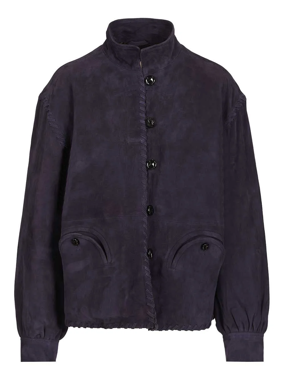 Oversized suede jacket. Straight collar. Embroidered detailing along the placket and hem. Black loden-effect buttons. Smiley-print exterior pockets and one interior pocket. Midnight blue padded lining. 100% LAMB LEATHER Made in: IT SKU: JKRLE01VIVB000 Our Products Are 100% Genuine. In All Cases We Stand By The Authenticity Of Every Product Sold On Our Site. All sales are final and we only accept returns for quality issue. Buyer is responsible for any import tax/duty if applicable.
