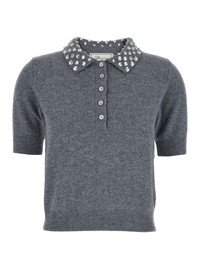 Blumarine Women Grey Polo Shirt With Collar Beaded In Wool Woman