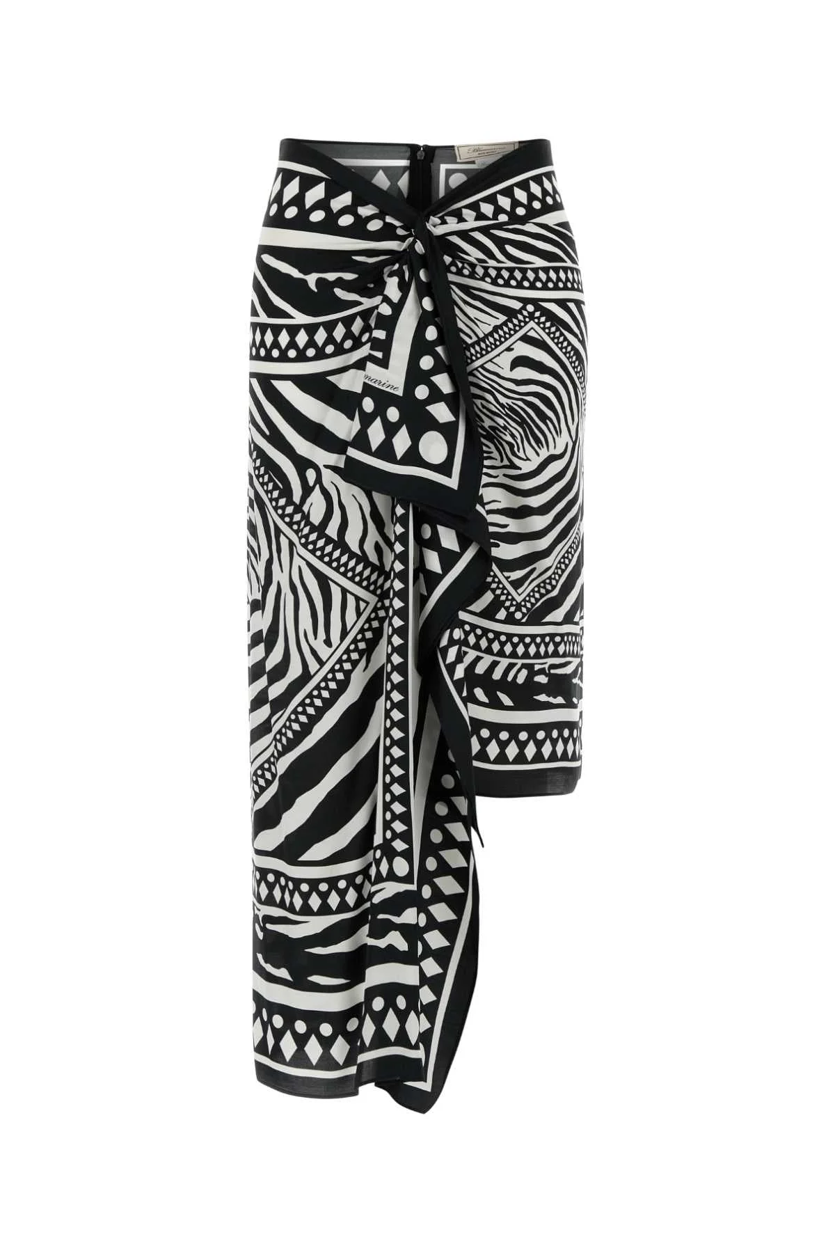 asymmetrical foulard-print skirt