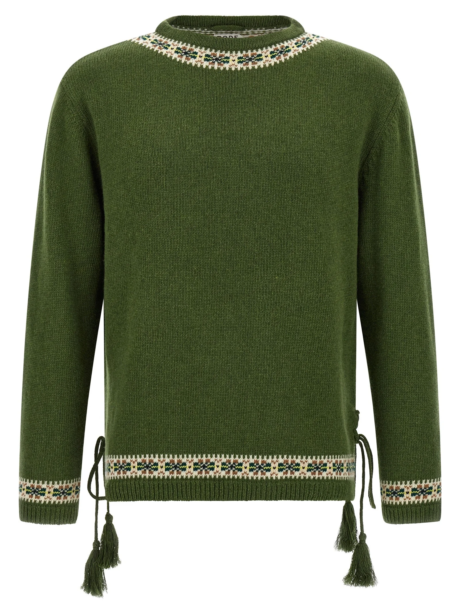 Virgin wool 'Moritz' sweater with jacquard band 'Fair Isle' pattern, crew neck, long sleeves with cuffs and dropped shoulder, side slits with lace and tassel at the end. true to size fit 100% virgin wool SKU: MRF25KT004GREENMULTI Our Products Are 100% Genuine. In All Cases We Stand By The Authenticity Of Every Product Sold On Our Site. All sales are final and we only accept returns for quality issue. Buyer is responsible for any import tax/duty if applicable.