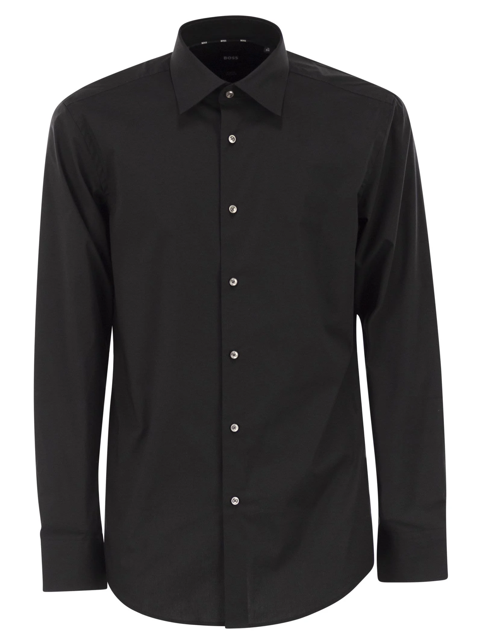Slim fit shirt in easy-iron stretch cotton poplin. A timeless BOSS Men's business shirt with a defined fit. - Slim fit - Kent collar - Round cuffs DESIGNER ID: 50469345 001 96% Cotton, 4% Elastane Size Type: CM SKU: 50469345001 Our Products Are 100% Genuine. In All Cases We Stand By The Authenticity Of Every Product Sold On Our Site. All sales are final and we only accept returns for quality issue. Buyer is responsible for any import tax/duty if applicable.