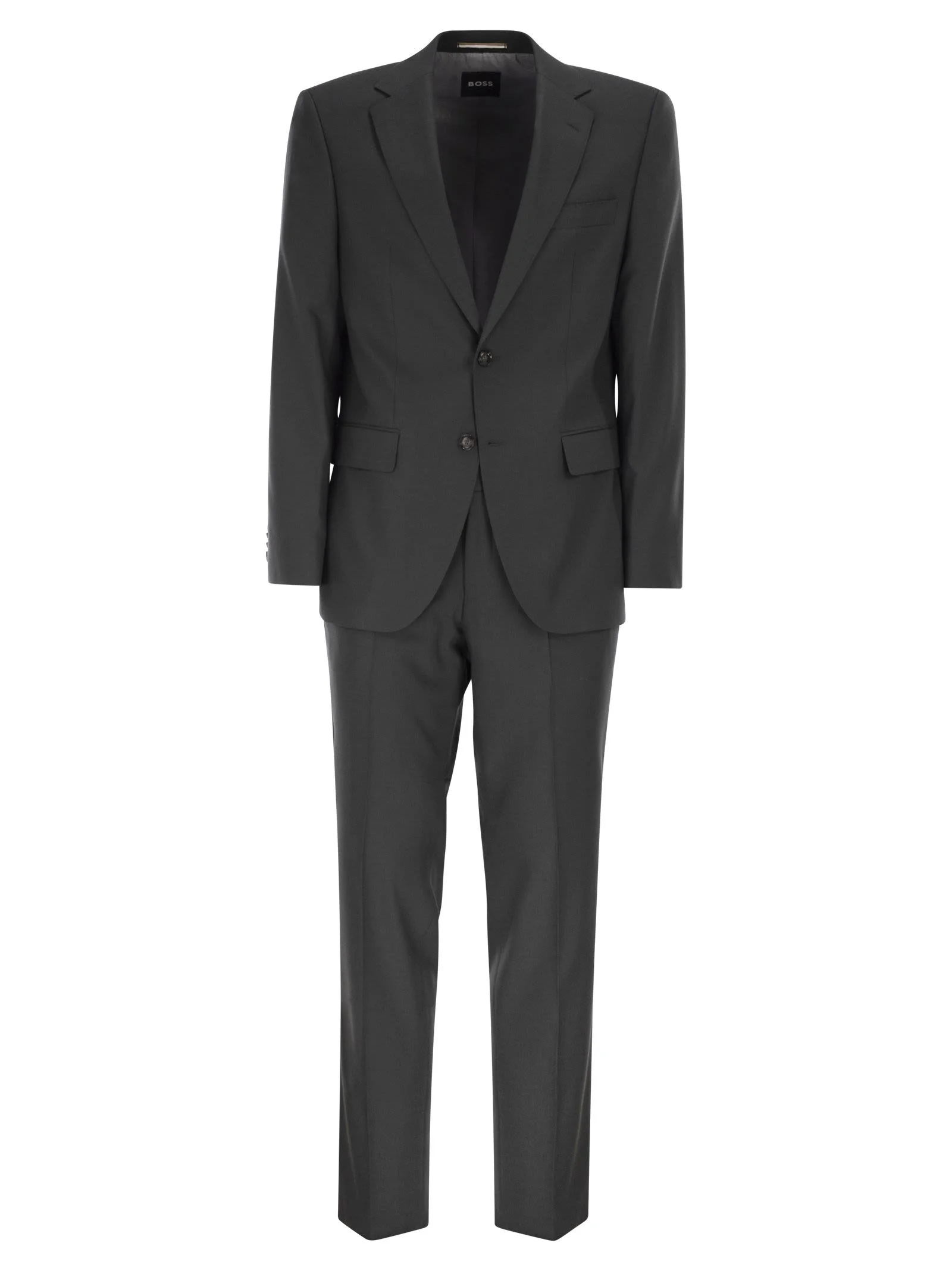 Add a touch of refined style to your working week with this BOSS Men's suit. Featuring a simple regular fit, this two-piece outfit is made from a stretch virgin wool blend that ensures comfort and crease resistance. Plain colour for a versatile formal style. - Regular fit - Classic lapels - Number of buttons: 2 - Chest pockets with flaps - Front pockets: Flap pockets - Inside pockets with flaps - Buttoned cuffs - Side vent - Fully lined - Standard length DESIGNER ID: 5055726110277196 348 44% Polyester, 30% Wool, 23% Viscose, 3% Elastane Lining: 95% Polyester, 5% Elastane Sleeve lining and Knee lining: 100% Viscose Size Type: IT SKU: 5055726110277196348 Our Products Are 100% Genuine. In All Cases We Stand By The Authenticity Of Every Product Sold On Our Site. All sales are final and we only accept returns for quality issue. Buyer is responsible for any import tax/duty if applicable.