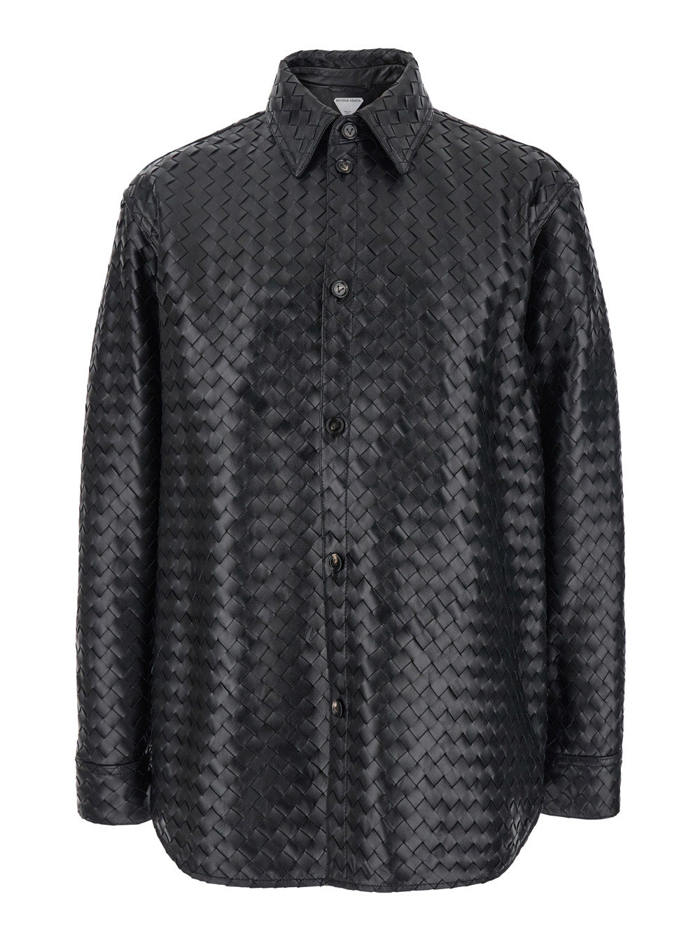 Bottega Veneta Men Black Oversize Jacket In Braided Leather Man