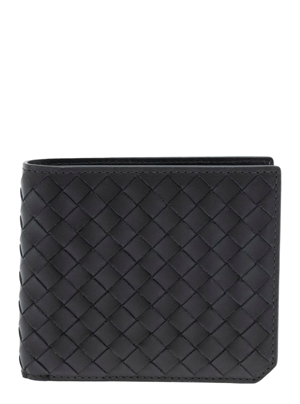 Bottega Veneta Men Green Bi-Fold Wallet With Intrecciato Motif And Embossed Logo Lettering On The In