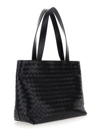 Bottega Veneta Men 'Small Intrecciato' Black Tote Bag With Zip Closure In Leather Man