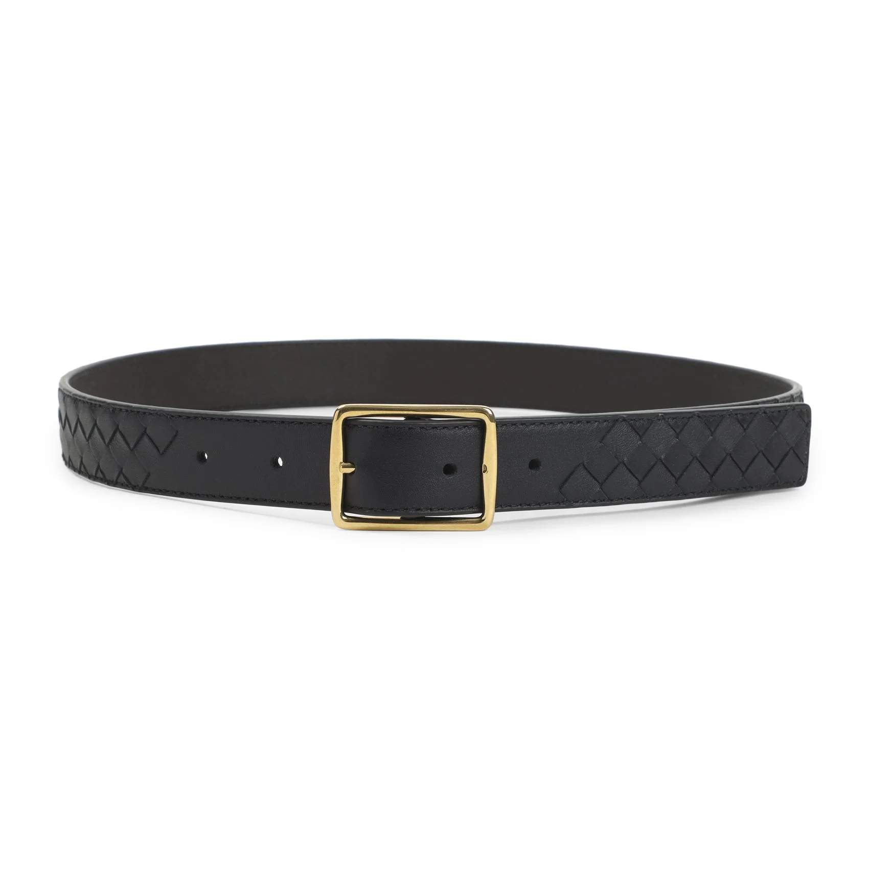 Bottega Veneta Black Calf Leather Reverso Belt. Pure calf leather belt, front black intreccio design, front gol-tone metallic buckle, inner fondant brown leather, reversible and adjustable design. Calf Leather | 100%CALF LEATHER H:2,5cm Size Type: CM SKU: 855244V5N22Black Our Products Are 100% Genuine. In All Cases We Stand By The Authenticity Of Every Product Sold On Our Site. All sales are final and we only accept returns for quality issue. Buyer is responsible for any import tax/duty if applicable.