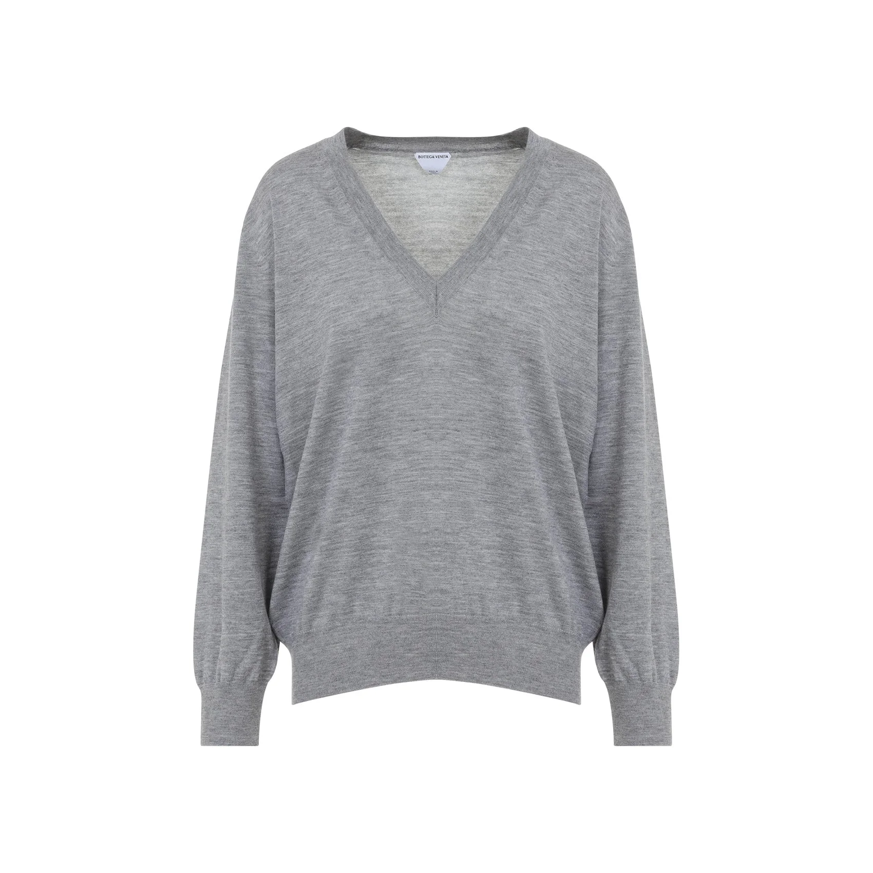 Bottega Veneta Gray Melange V Neck Cashmere Sweater. Gray cashmere, V neckline, long sleeves, ribbed collar, cuffs and waistband, relaxed fit. Cashmere | 100%CASHMERE Size Type: INT SKU: 811516V4B70Grey Our Products Are 100% Genuine. In All Cases We Stand By The Authenticity Of Every Product Sold On Our Site. All sales are final and we only accept returns for quality issue. Buyer is responsible for any import tax/duty if applicable.