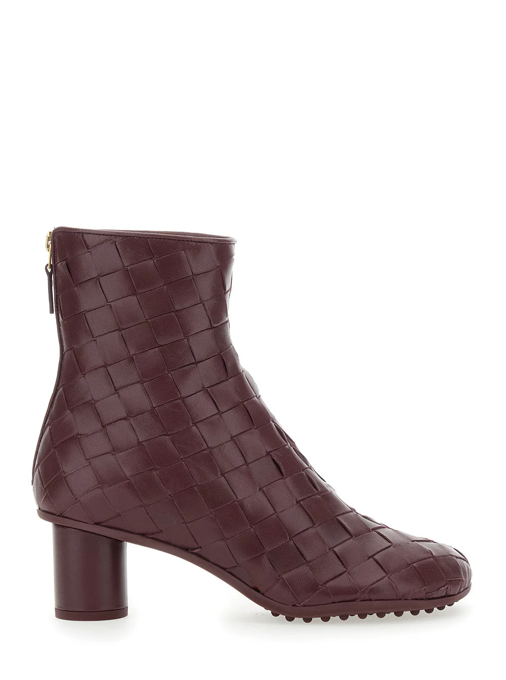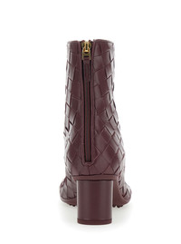Bottega Veneta Women 'Atomic' Bordeaux Ankle Boots With Braided Design And Kitten Heel In Leather Wo