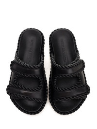 Black "Jack" flat mules from Bottega Veneta in leather with torchon details, double band, ergonomic insole. Heel: 3,5 cm Lamb skin T58% POLYURETHANE T42% POLYESTER Made in: IT SKU: 787003VBSDJ1000 Our Products Are 100% Genuine. In All Cases We Stand By The Authenticity Of Every Product Sold On Our Site. All sales are final and we only accept returns for quality issue. Buyer is responsible for any import tax/duty if applicable.