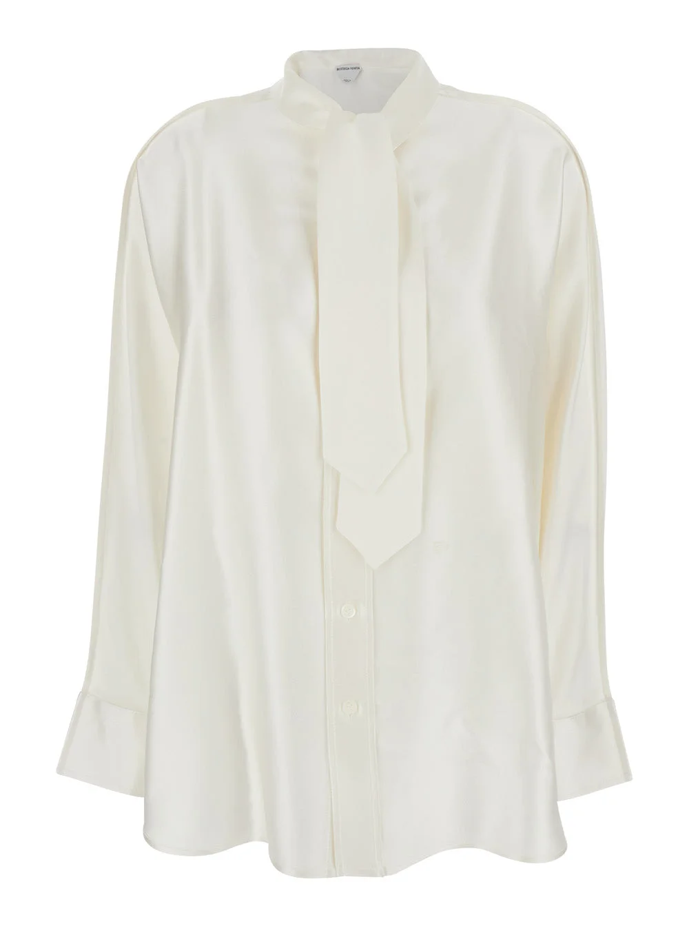 Bottega Veneta Women Fluid Silk Satin Necktie Shirt Knot Cuff Button