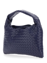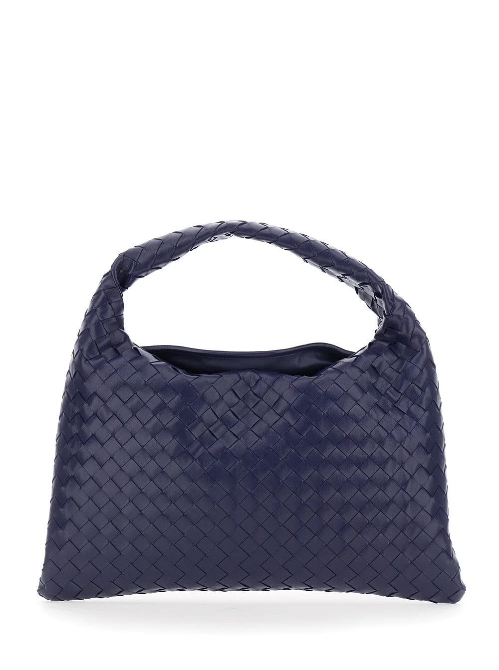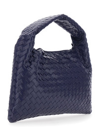 Bottega Veneta Women 'Hop' Blue Shoulder Bag With Intreccio Motif In Leather Woman