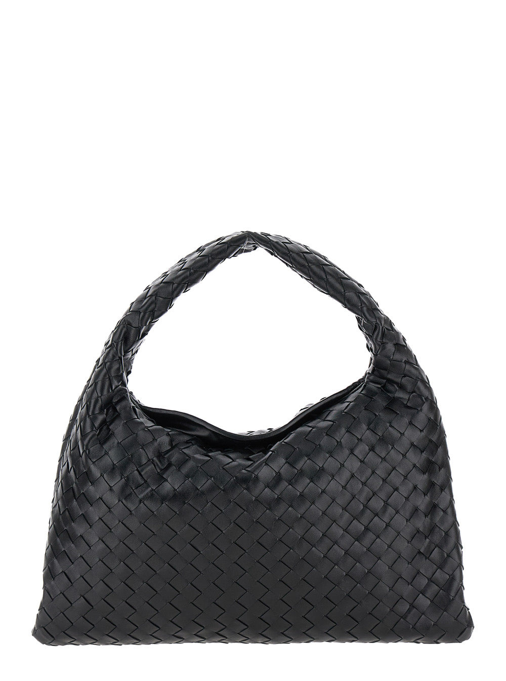Bottega Veneta Women 'Hop Small' Black Shoulder Bag With Intreccio Motif In Leather Woman