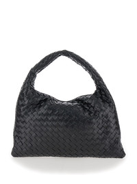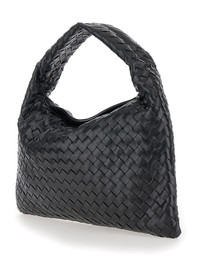 Bottega Veneta Women 'Hop Small' Black Shoulder Bag With Intreccio Motif In Leather Woman