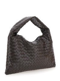Bottega Veneta Women 'Hop Small' Brown Shoulder Bag With Intreccio Motif In Leather Woman