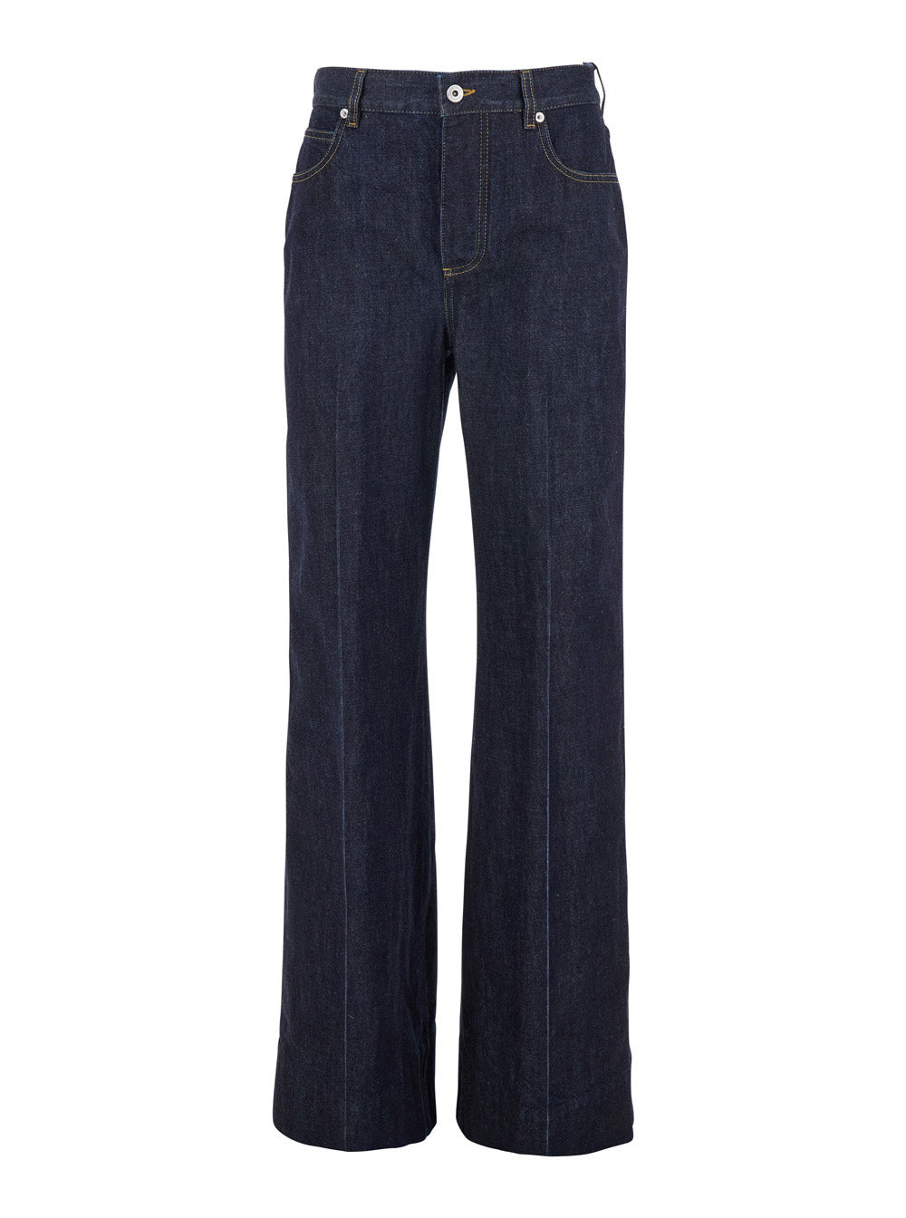 Bottega Veneta Women 'Indigo' Blue Palazzo Jeans With Logo Patch On The Back In Cotton Woman