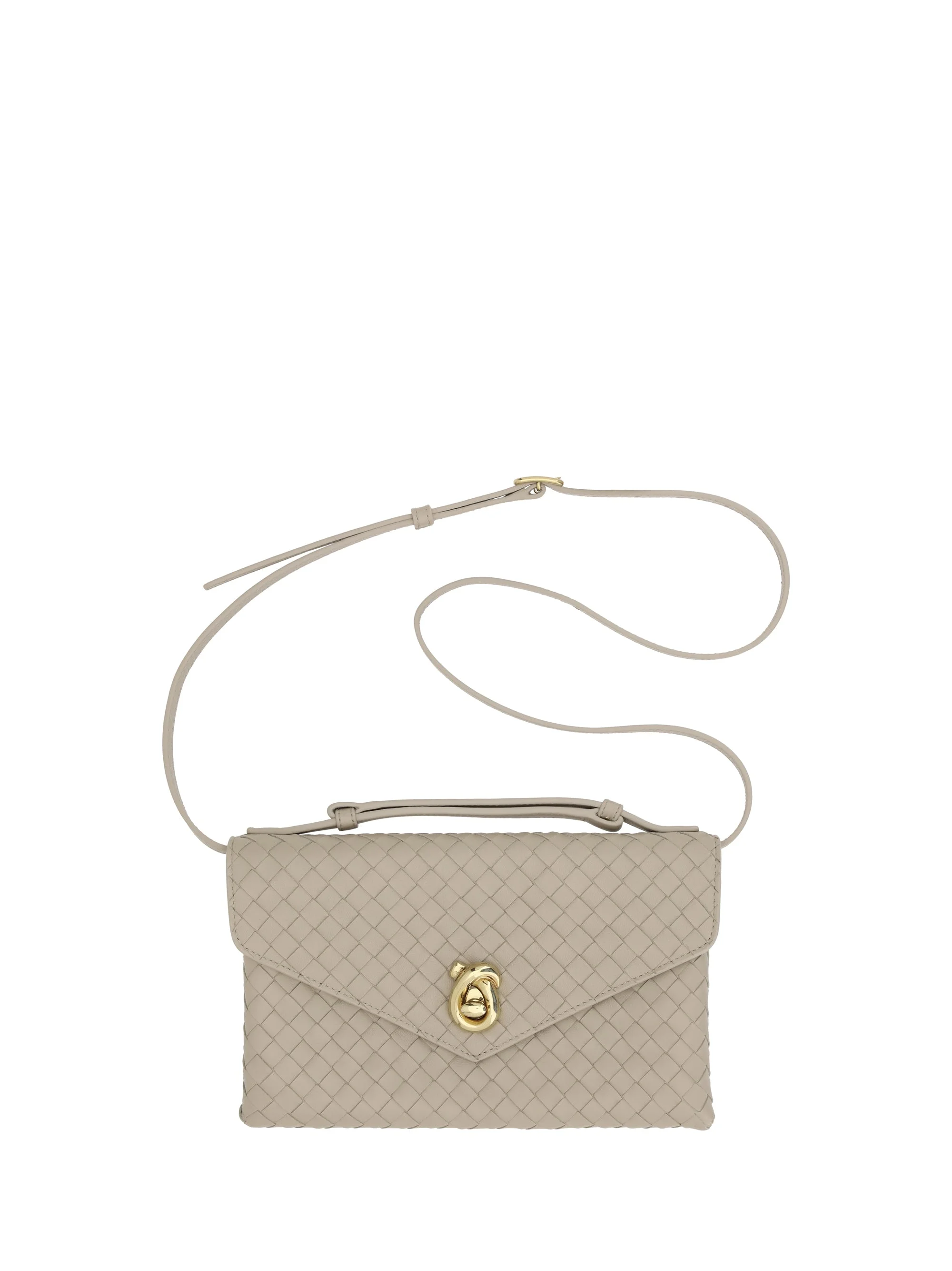 Bottega Veneta's Knot Lock Shoulder Bag is made of lambskin leather, with a sophisticated design and the brand's iconic woven pattern. It features a flat top handle, an adjustable and removable shoulder strap for different wearing options. The closure features the iconic Knot Lock on the front, while on the back you find a slit pocket. Inside, the bag offers two compartments and a card slot, combining elegance and functionality in one accessory. Size Type: One Size SKU: 817191V08Z09614 Our Products Are 100% Genuine. In All Cases We Stand By The Authenticity Of Every Product Sold On Our Site. All sales are final and we only accept returns for quality issue. Buyer is responsible for any import tax/duty if applicable.