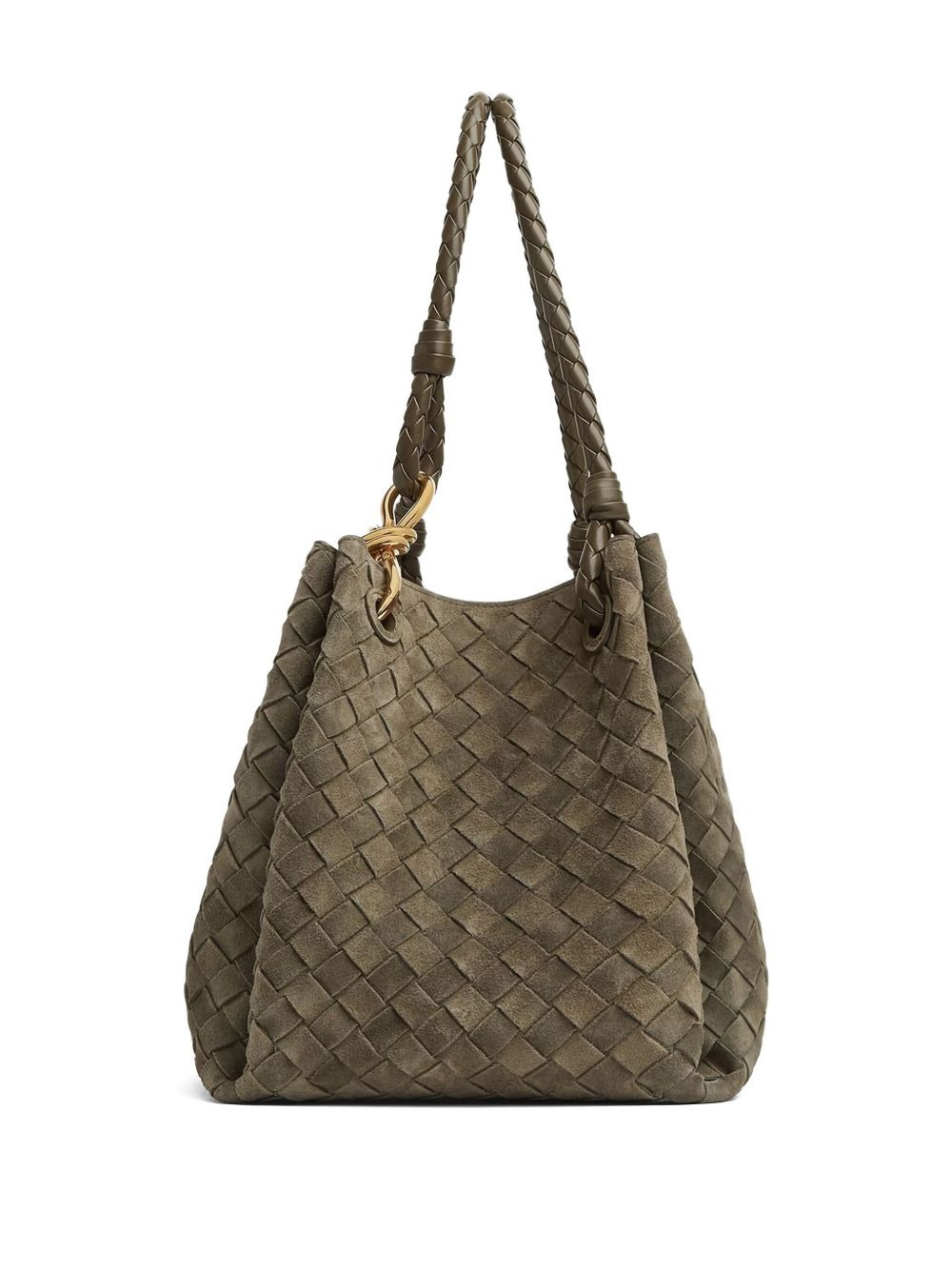 olive green calfskin Intrecciato weave knotted top handles gold-tone clasp open top Size Type: One Size SKU: 805090V1QE93230 Our Products Are 100% Genuine. In All Cases We Stand By The Authenticity Of Every Product Sold On Our Site. All sales are final and we only accept returns for quality issue. Buyer is responsible for any import tax/duty if applicable.