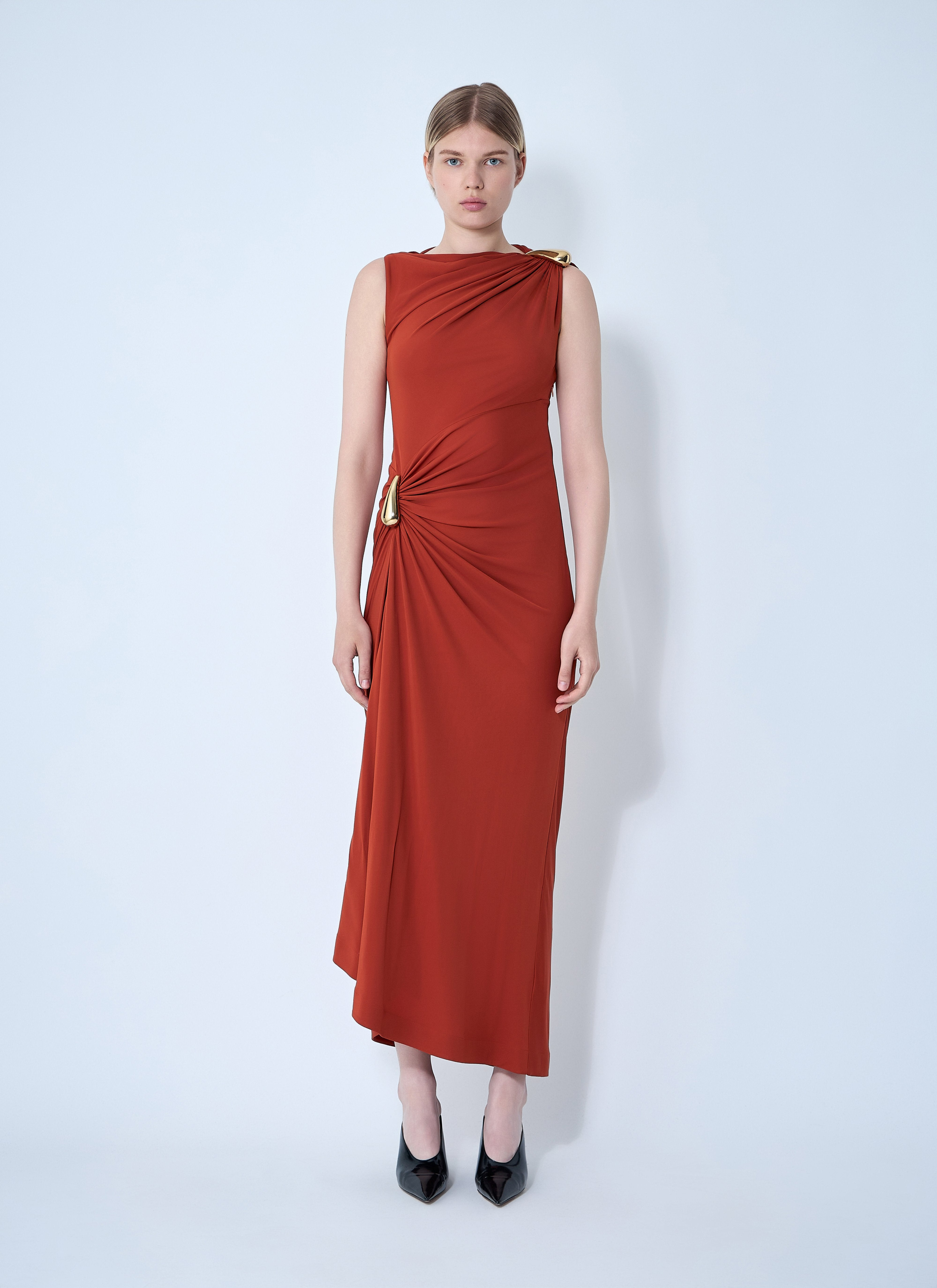 Dress in matte crepe viscose jersey with signature metal drop details. Crewneck Side zip closure Camisole sleeves Gold-tone signature hardware 100% Viscose. Dry clean 831590 V4YX0 8249 SKU: 831590V4YX08249 Our Products Are 100% Genuine. In All Cases We Stand By The Authenticity Of Every Product Sold On Our Site. All sales are final and we only accept returns for quality issue. Buyer is responsible for any import tax/duty if applicable.