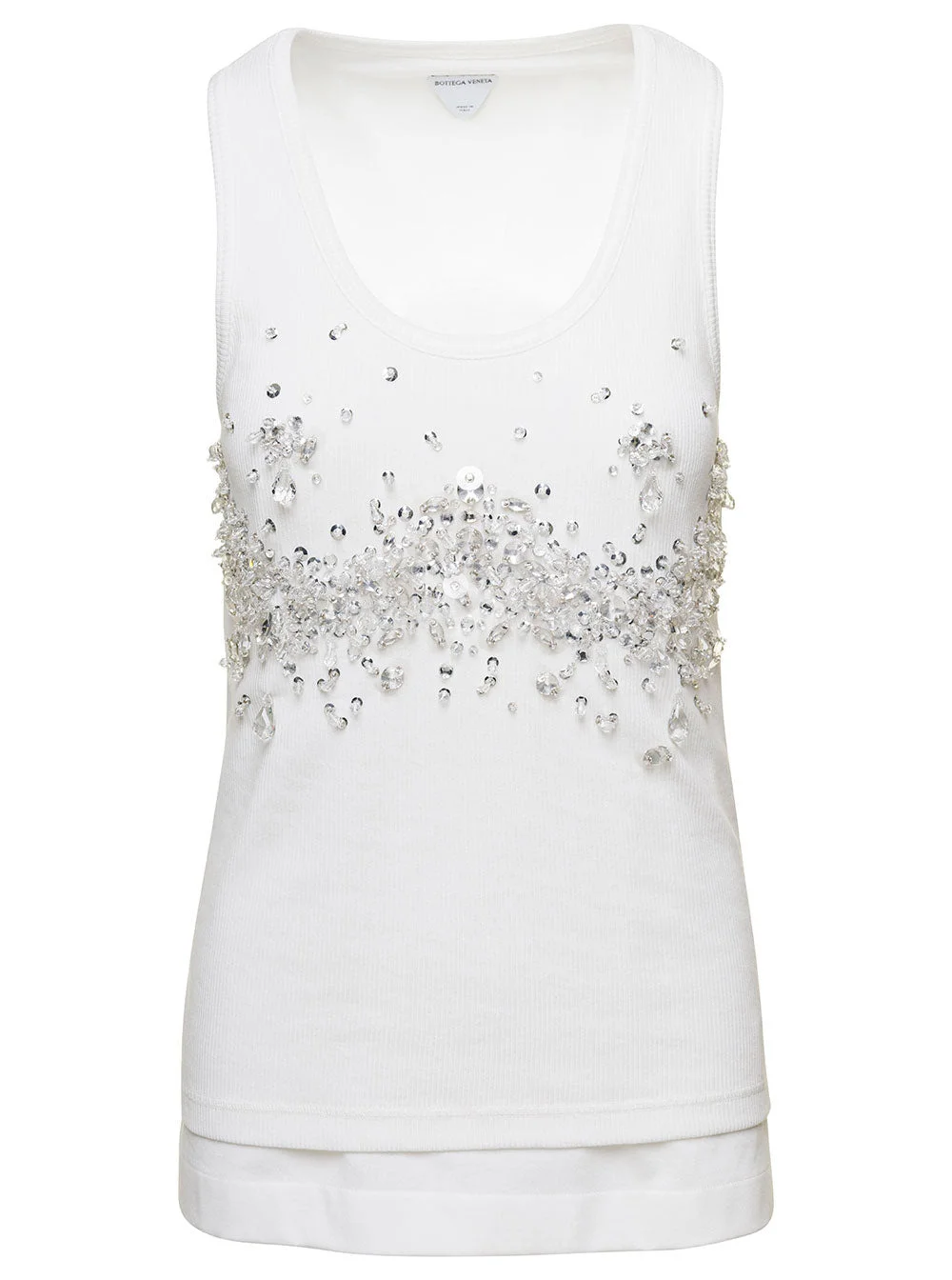 Bottega Veneta Women White Ribbed Tank Top With Embroidered Crystal Embellishment In Jersey Woman
