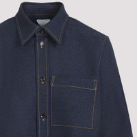 Bottega Veneta Dark Indigo Wool Drill Shirt. Crafted from dark indigo blue wool drill, yellow contrasting stitching, pointed collar, front button fastening, patch pocket on the breast, long sleeves, buttoned cuffs, back yoke and boxy pleat, slightly round hem. Wool | 100%WOOL Size Type: IT SKU: 832289V5VQ0Blue Our Products Are 100% Genuine. In All Cases We Stand By The Authenticity Of Every Product Sold On Our Site. All sales are final and we only accept returns for quality issue. Buyer is responsible for any import tax/duty if applicable.