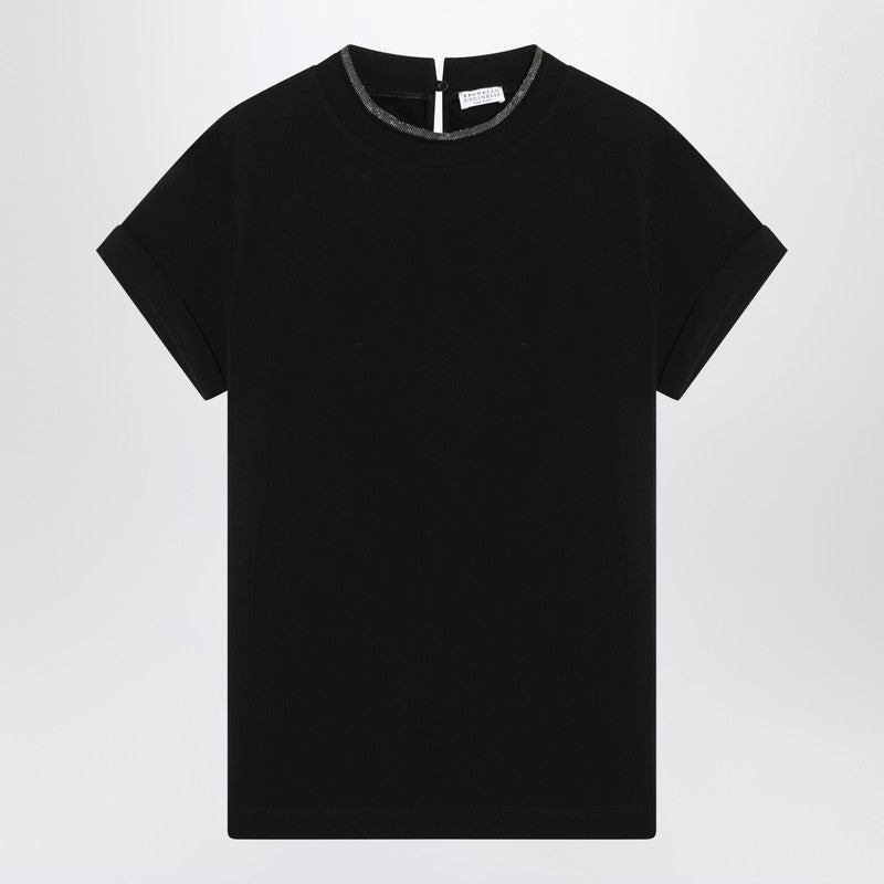 Brunello Cucinelli Black Crew-Neck T-Shirt With Pendant Women