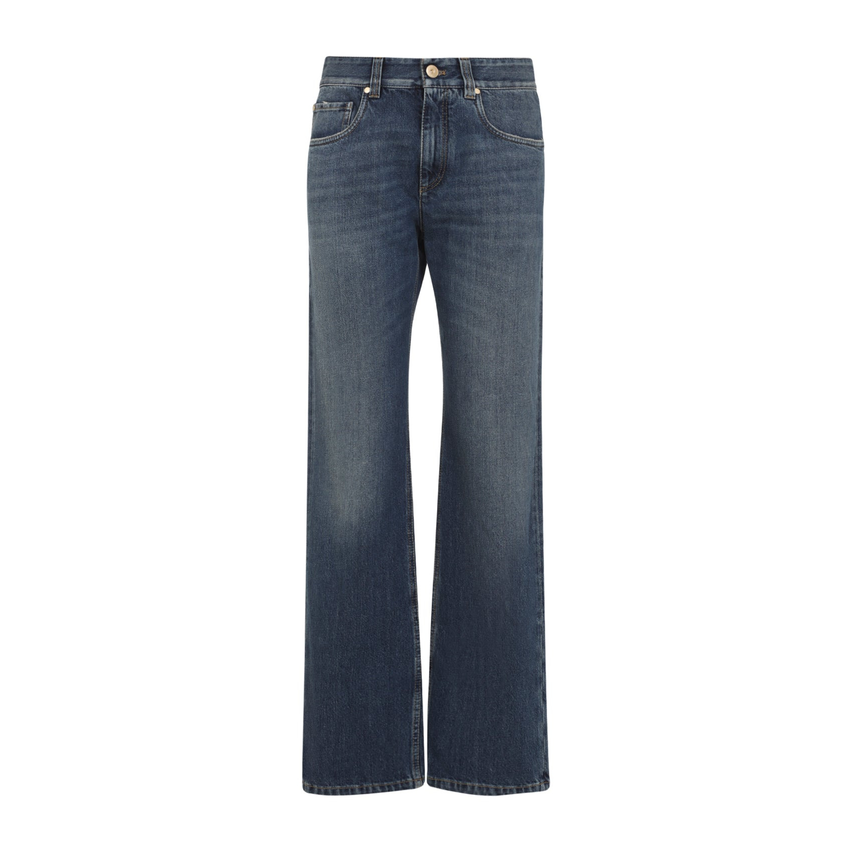 Brunello Cucinelli Blue Cotton Jeans. Crafted from washed blue cotton denim, regular waist, belt loops, front button and fly-zip fastening, 5-pocket design, back leather patch with logo, straight leg. Cotton | 100%COTTON Size Type: IT SKU: MA095P4035Blue Our Products Are 100% Genuine. In All Cases We Stand By The Authenticity Of Every Product Sold On Our Site. All sales are final and we only accept returns for quality issue. Buyer is responsible for any import tax/duty if applicable.