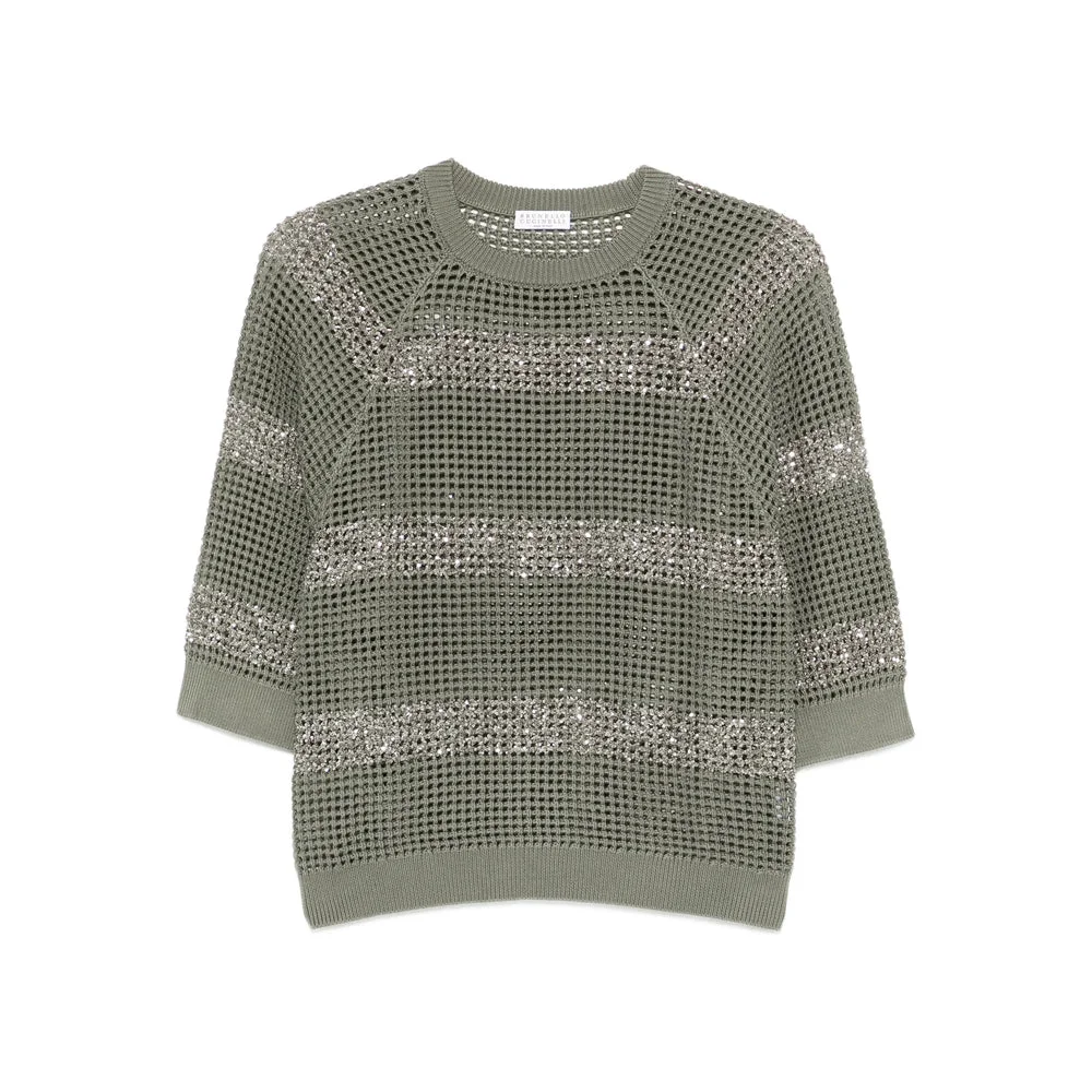 green open knit sequin embellishment round neck three-quarter sleeves ribbed cuffs MADE IN:ItalyMATERIAL:Outer Composition Cotton: 100.0%, Outer Composition Polyamide: 55.0%, Outer Composition Polyester: 45.0%COLOR:GREEN SKU: M58772800COC75 Our Products Are 100% Genuine. In All Cases We Stand By The Authenticity Of Every Product Sold On Our Site. All sales are final and we only accept returns for quality issue. Buyer is responsible for any import tax/duty if applicable.