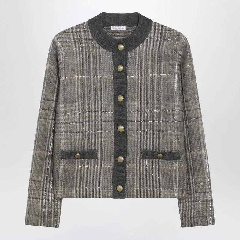 Brunello Cucinelli Jacquard Cardigan With Dazzling Check Embroidery Women