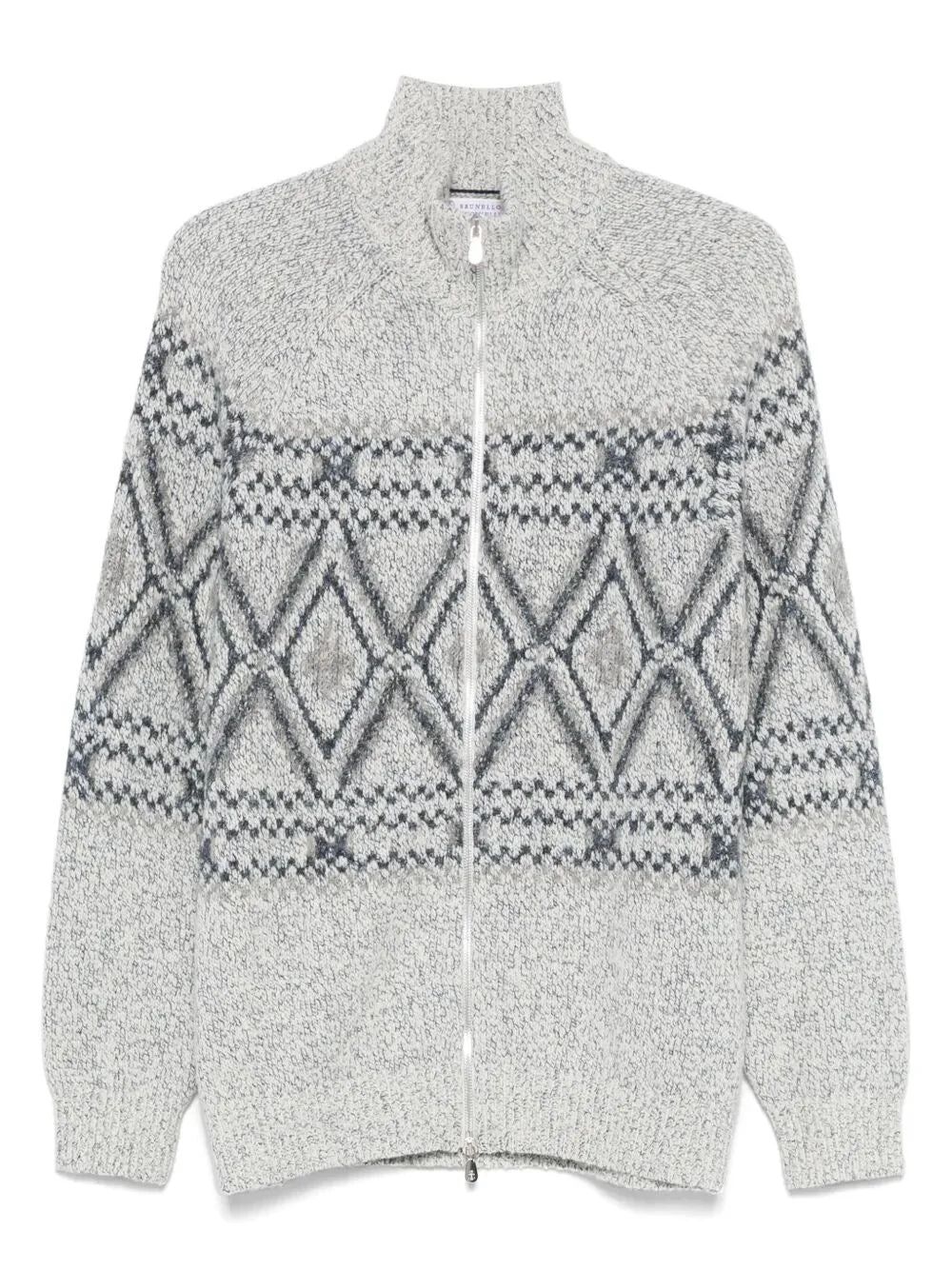 Fair Isle Wool, Silk and Cashmere-Blend Zip-Up Cardigan Gray