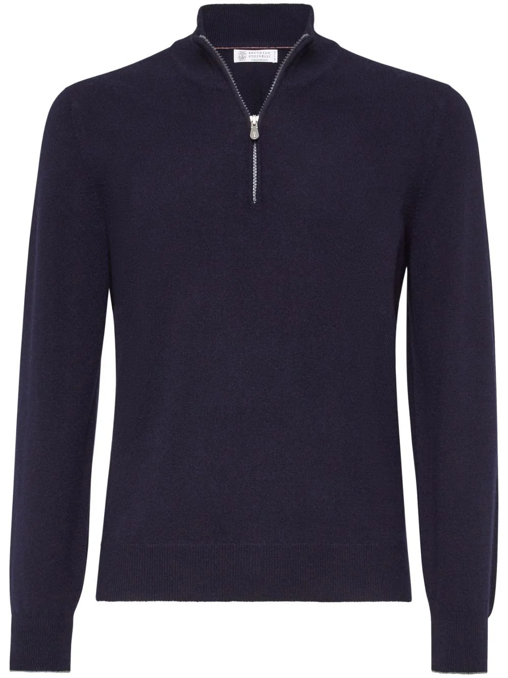 Navy blue cashmere knitted construction funnel neck short front zip fastening long sleeves ribbed cuffs and hem straight hem Size Type: IT SKU: M2200124CW425 Our Products Are 100% Genuine. In All Cases We Stand By The Authenticity Of Every Product Sold On Our Site. All sales are final and we only accept returns for quality issue. Buyer is responsible for any import tax/duty if applicable.